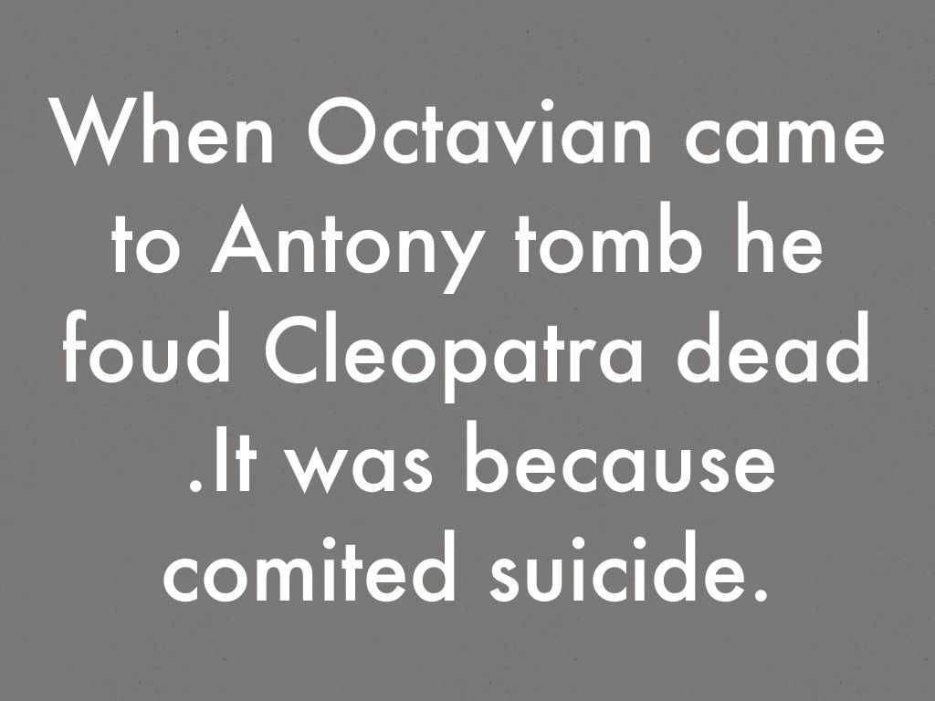 When Octavian came to Antony tomb he foud Cleopatra dead .It was because comited suicide.
