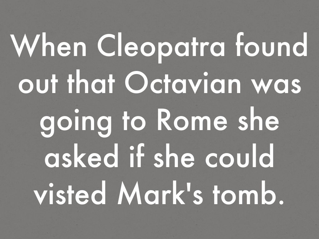 When Cleopatra found out that Octavian was going to Rome she asked if she could visted Mark's tomb.