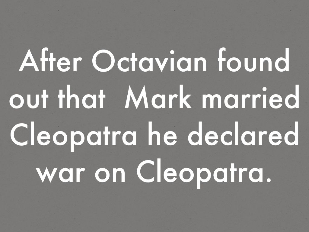 After Octavian found out that Mark married Cleopatra he declared war on Cleopatra.