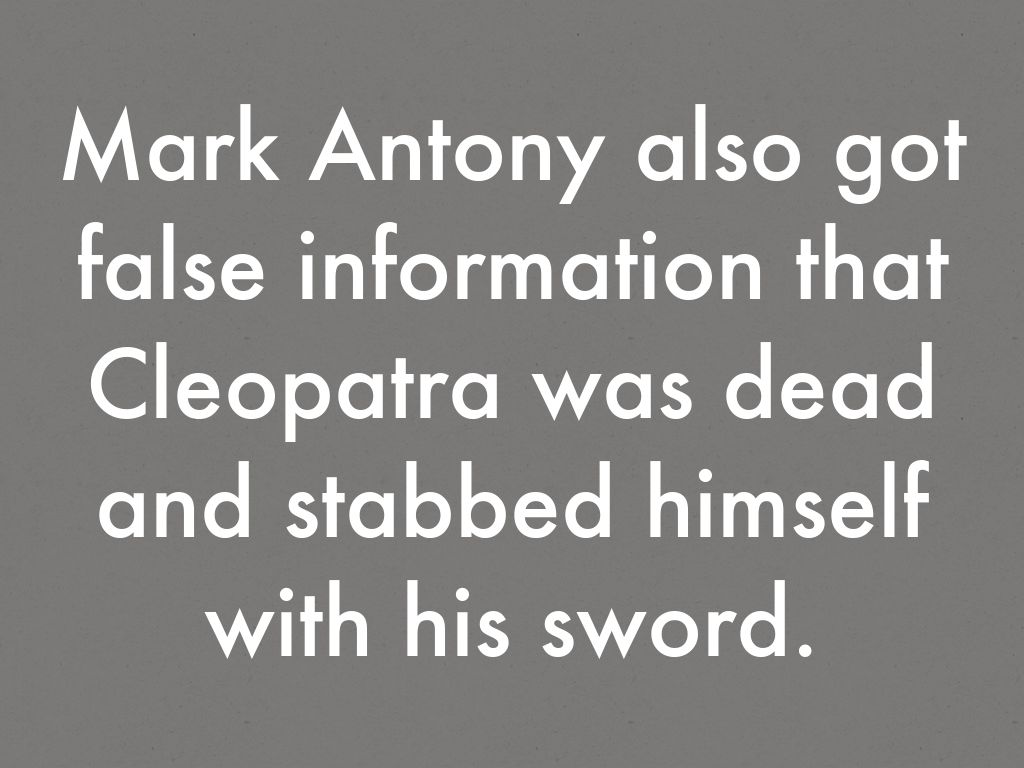 Mark Antony also got false information that Cleopatra was dead and stabbed himself with his sword.