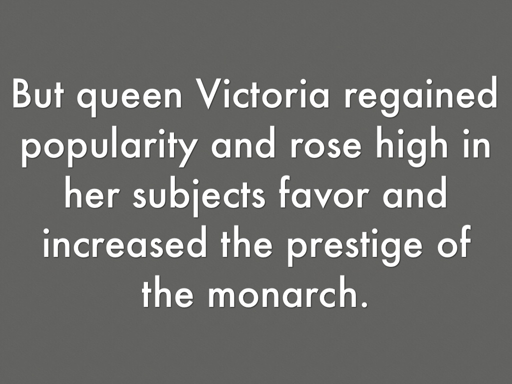 But queen Victoria regained popularity and rose high in her subjects favor and increased the prestige of the monarch.