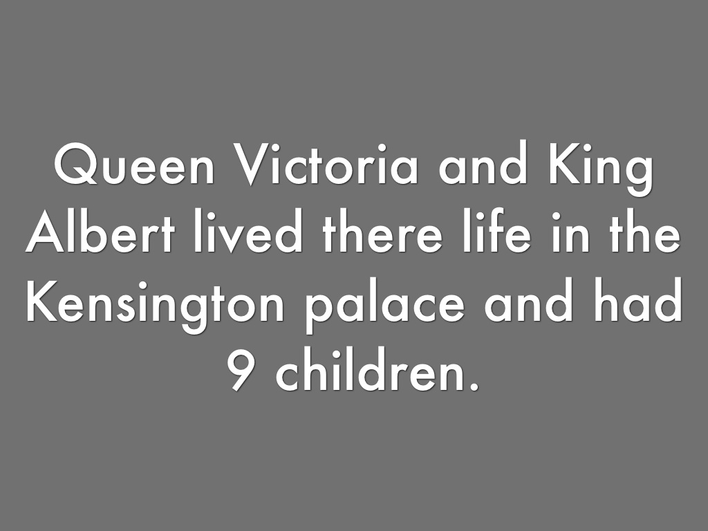 Queen Victoria and King Albert lived there life in the Kensington palace and had 9 children.