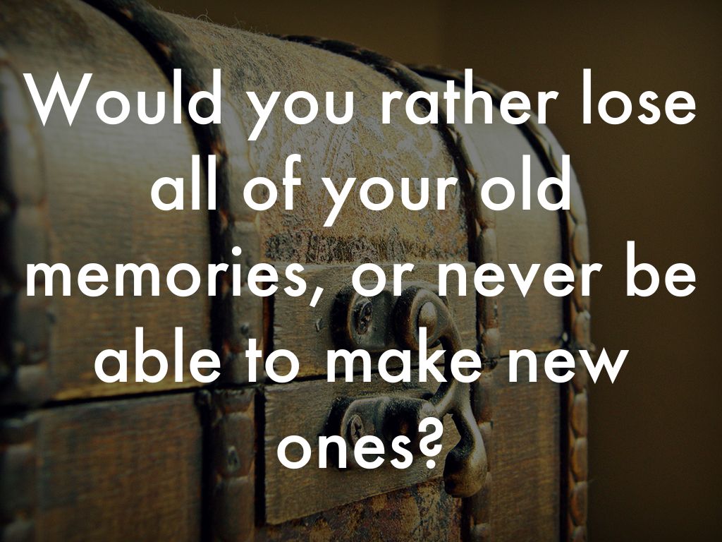 Would you rather lose all of your old memories, or never be able to make new ones?