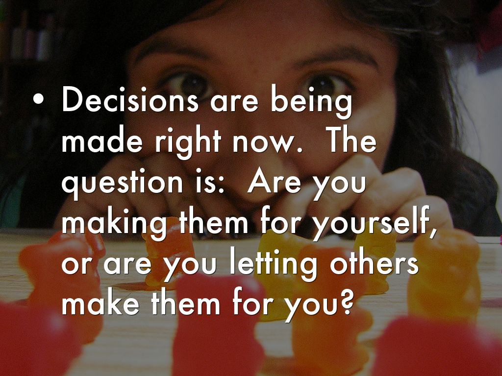 Decisions are being made right now. The question is: Are you making them for yourself, or are you letting others make them for you?