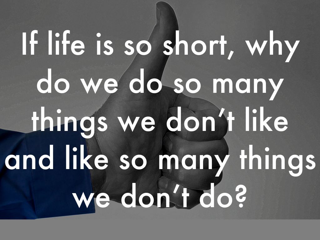 If life is so short, why do we do so many things we don’t like and like so many things we don’t do?