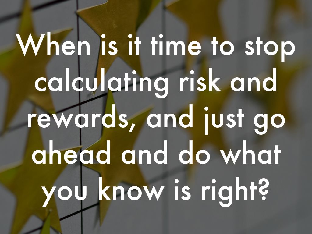 When is it time to stop calculating risk and rewards, and just go ahead and do what you know is right?