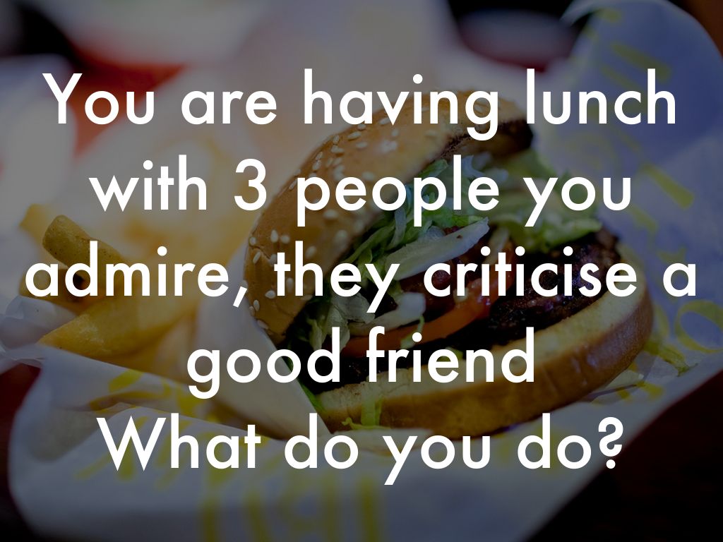 You are having lunch with 3 people you admire, they criticise a good friend