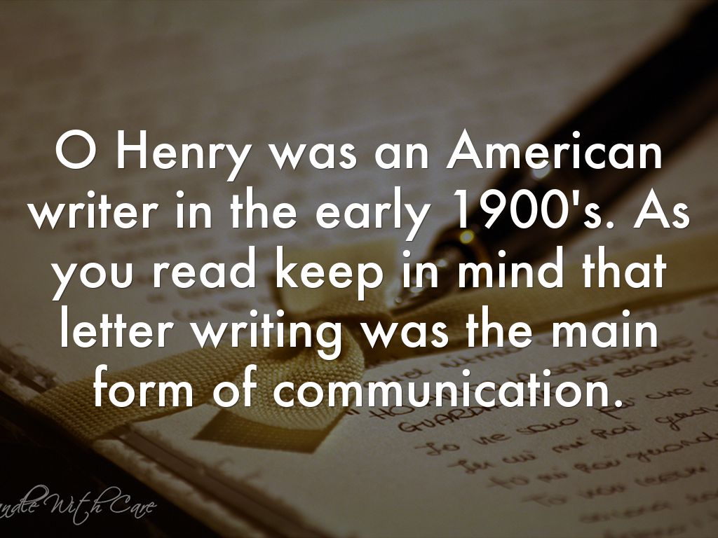 O Henry was an American writer in the early 1900's. As you read keep in mind that letter writing was the main form of communication.
