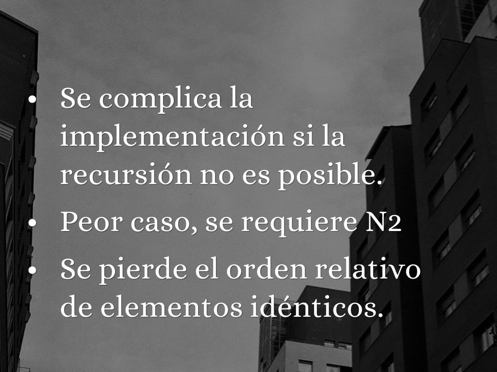 No se requiere de espacio adicional durante ejecución (in-place processing).