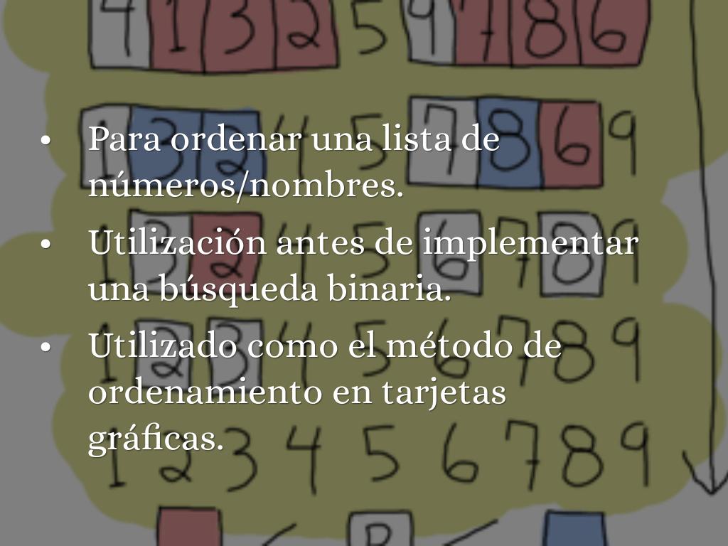 Utilizado como el método de ordenamiento en tarjetas gráficas.