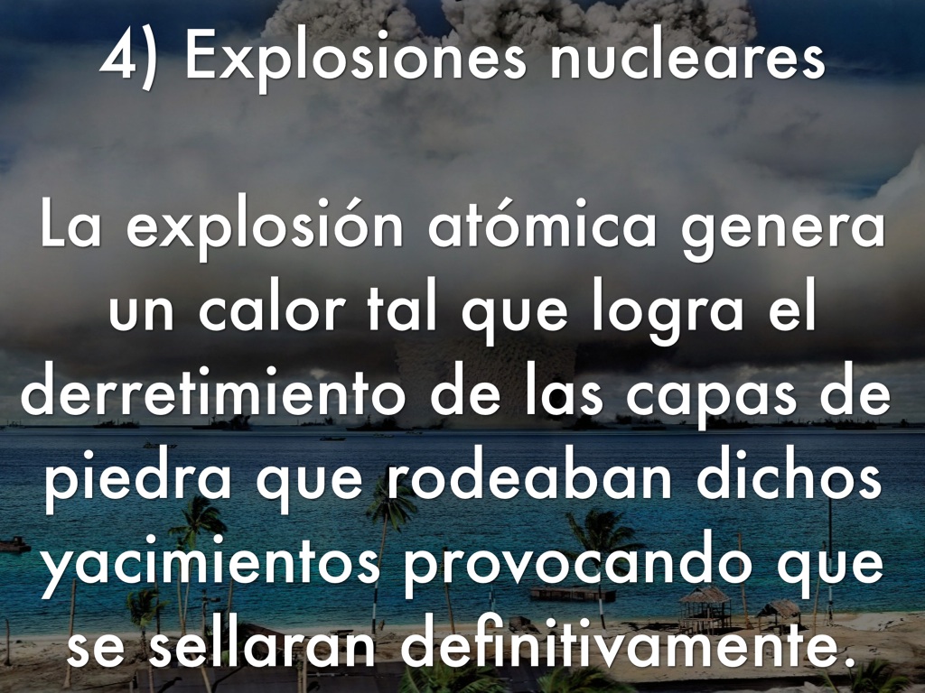 La explosión atómica genera un calor tal que logra el derretimiento de las capas de piedra que rodeaban dichos yacimientos provocando que se sellaran definitivamente.