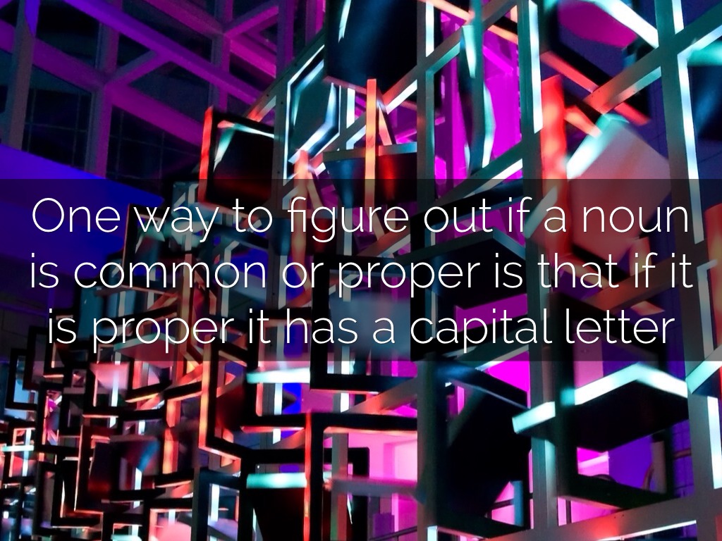 One way to figure out if a noun is common or proper is that if it is proper it has a capital letter