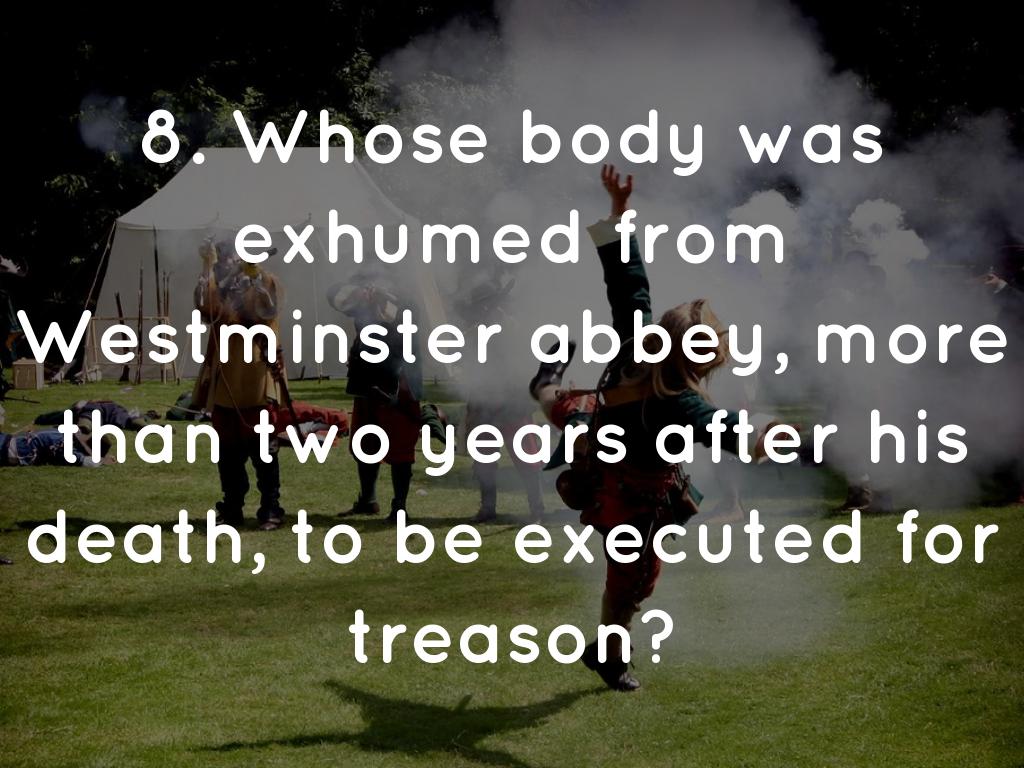 8. Whose body was exhumed from Westminster abbey, more than two years after his death, to be executed for treason?