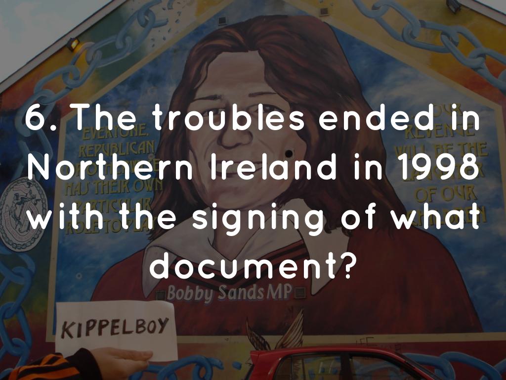 6. The troubles ended in Northern Ireland in 1998 with the signing of what document?