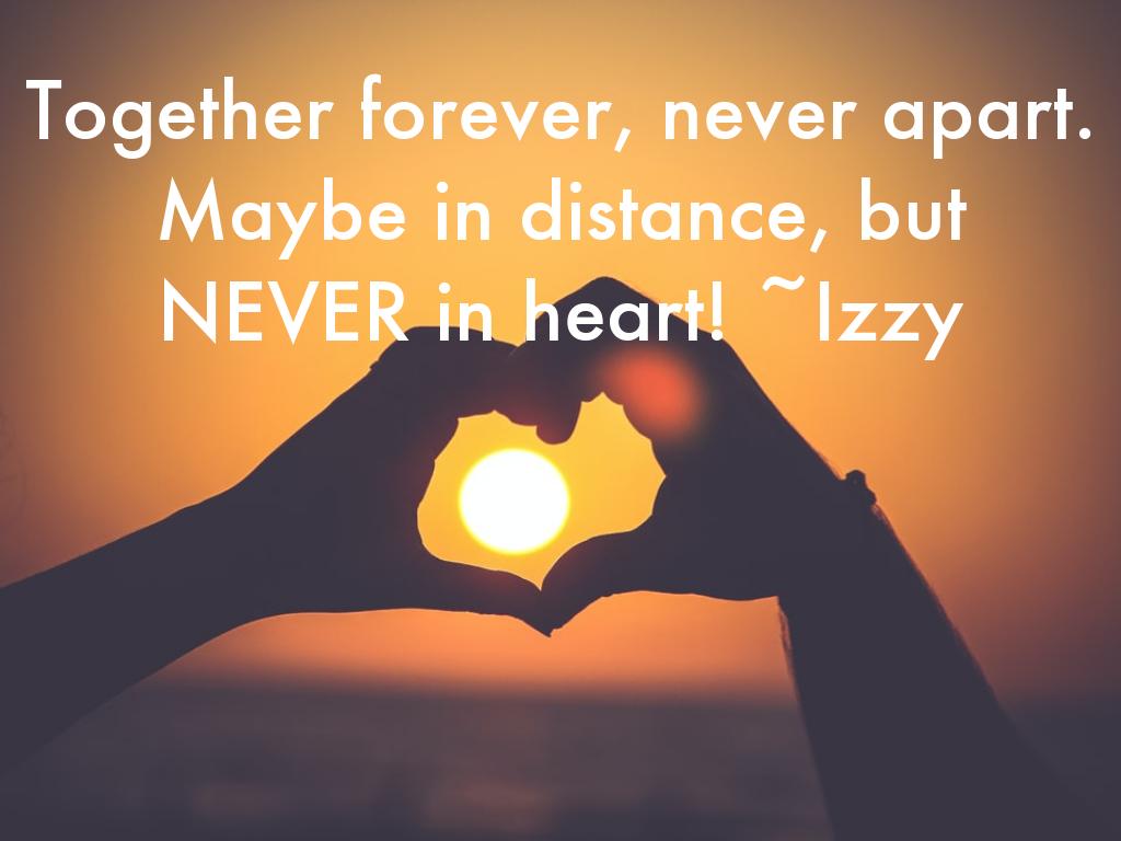Together forever, never apart. Maybe in distance, but NEVER in heart! ~Izzy