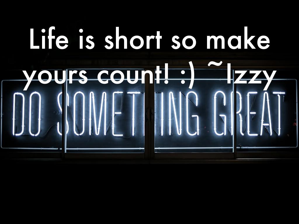 Life is short so make yours count! :) ~Izzy