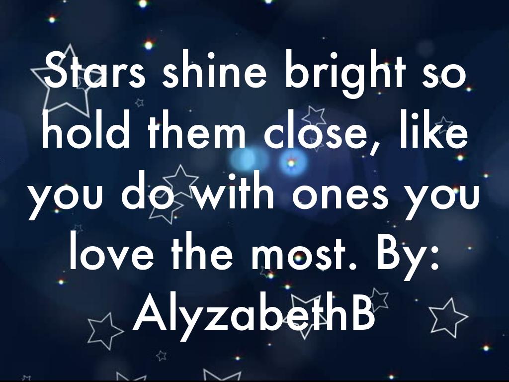 Stars shine bright so hold them close, like you do with ones you love the most. By: