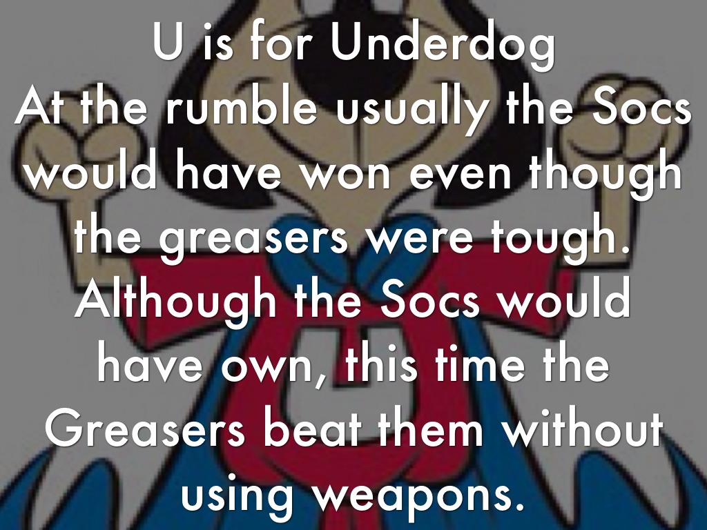 At the rumble usually the Socs would have won even though the greasers were tough. Although the Socs would have own, this time the Greasers beat them without using weapons.