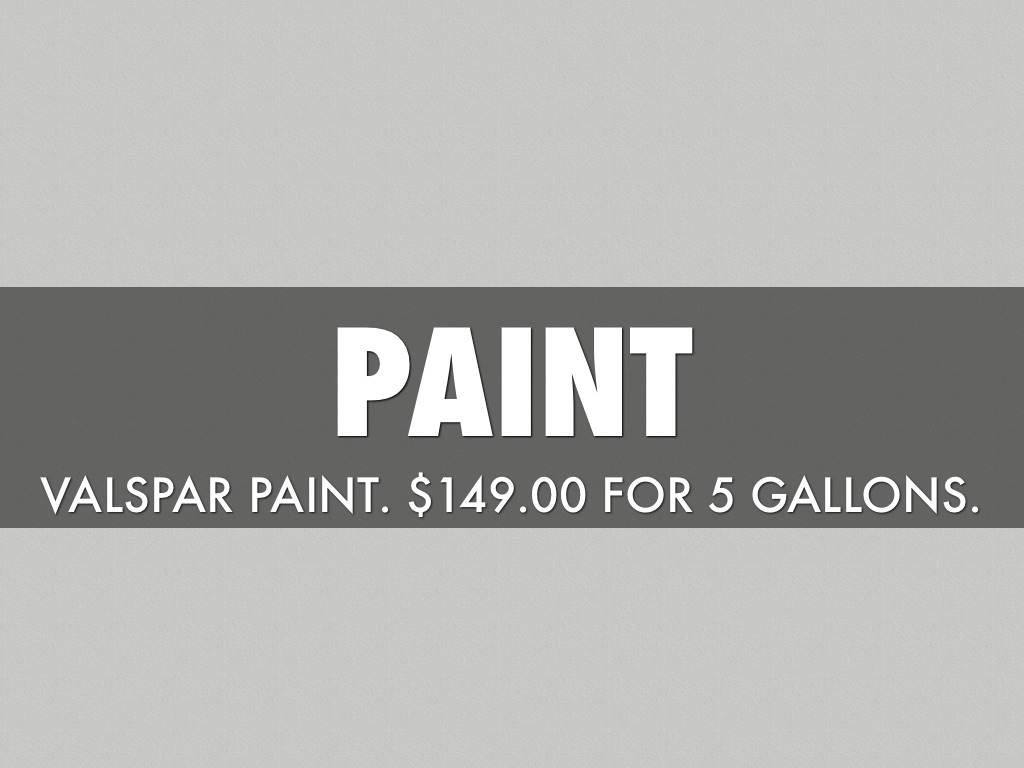 VALSPAR PAINT. $149.00 FOR 5 GALLONS.