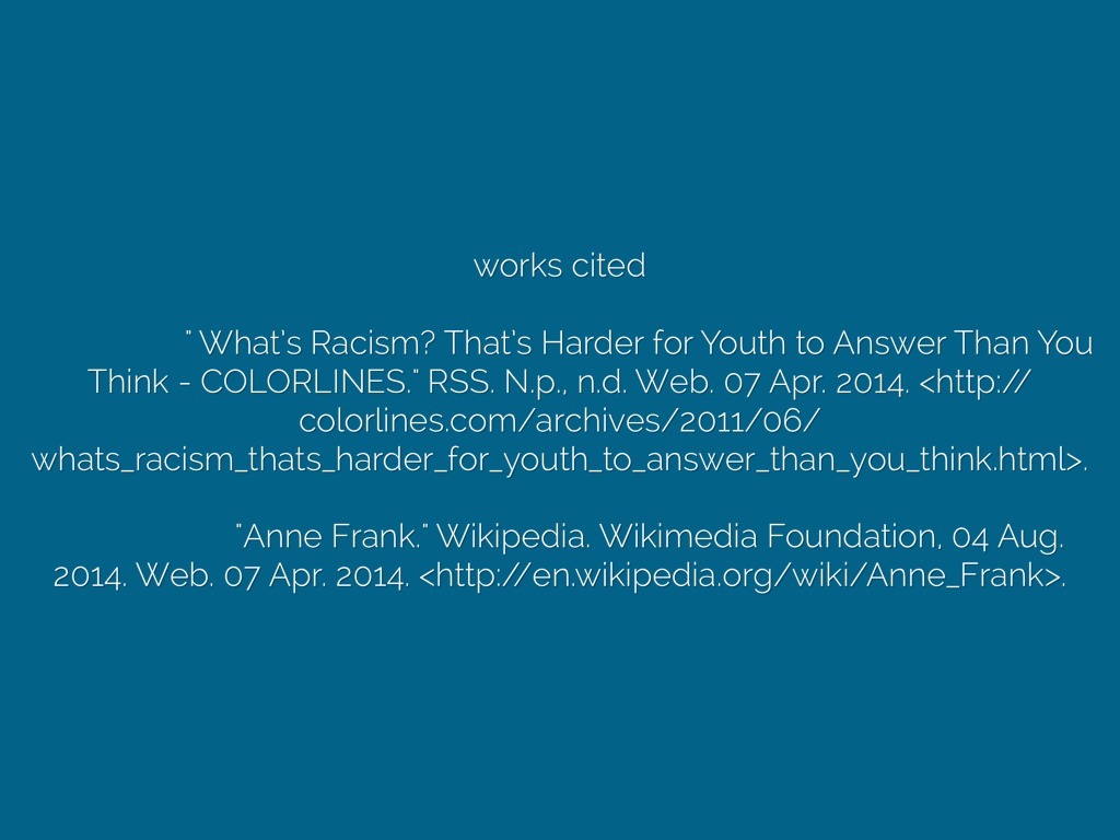 "Anne Frank." Wikipedia. Wikimedia Foundation, 04 Aug. 2014. Web. 07 Apr. 2014. .
