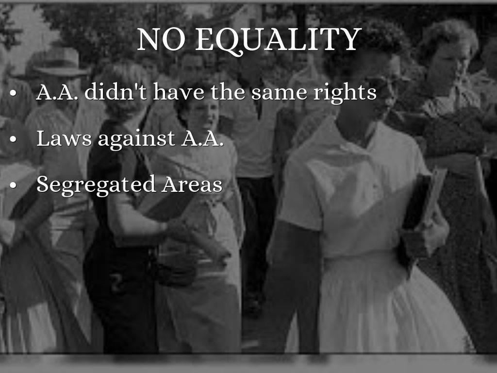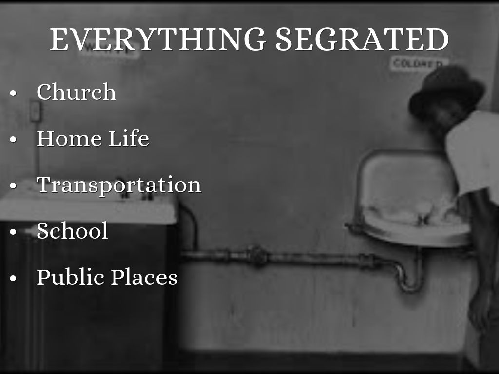 Everything Segregated- Practically everything was seperated between African Americans and White people. Even Water Fountains were separated.