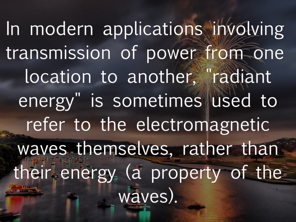In modern applications involving transmission of power from one location to another, "radiant energy" is sometimes used to refer to the electromagnetic waves themselves, rather than their energy (a property of the waves).