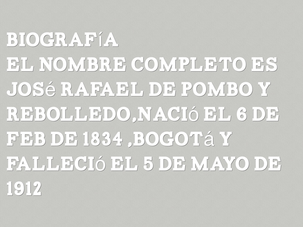 El nombre completo es José Rafael de Pombo y Rebolledo ,Nació el 6 de feb de 1834 ,Bogotá y falleció el 5 de mayo de 1912