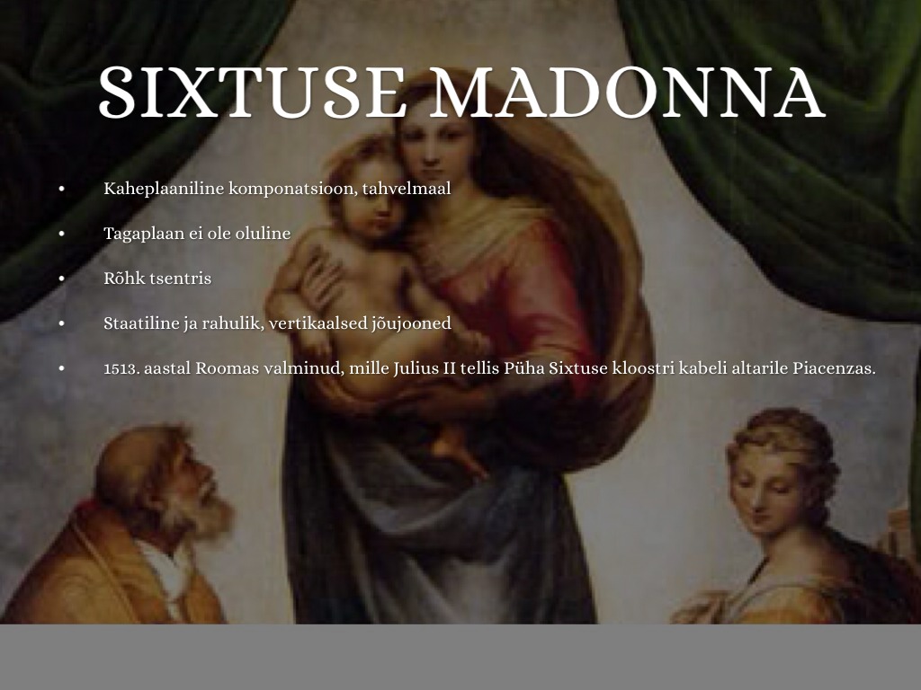 1513. aastal Roomas valminud, mille Julius II tellis Püha Sixtuse kloostri kabeli altarile Piacenzas.