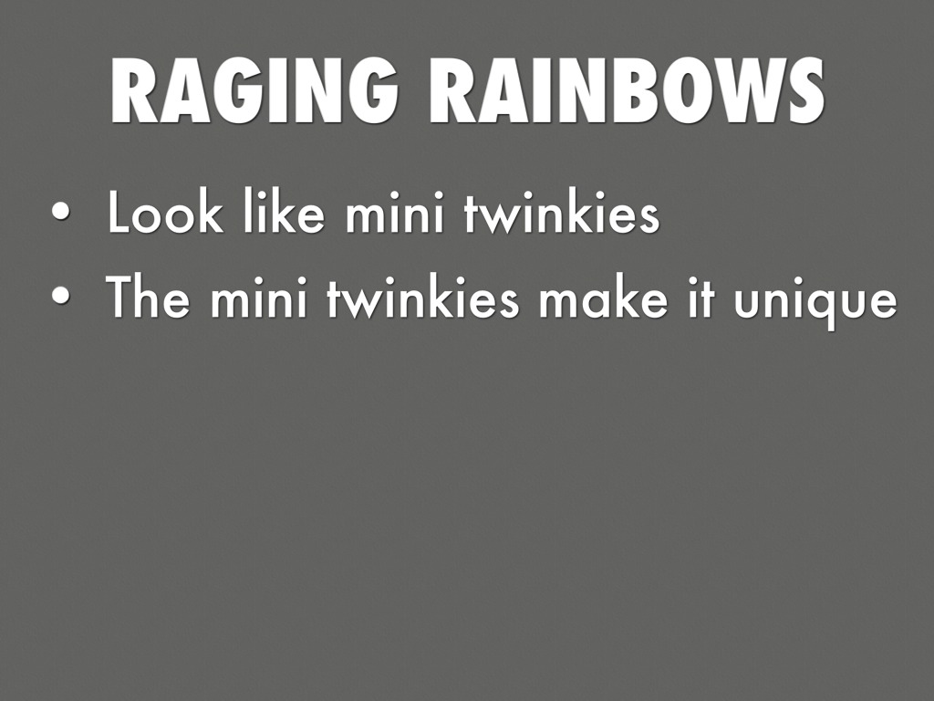 CONSISTS OF TWINKIES AND RAINBOW FOOD COLORING