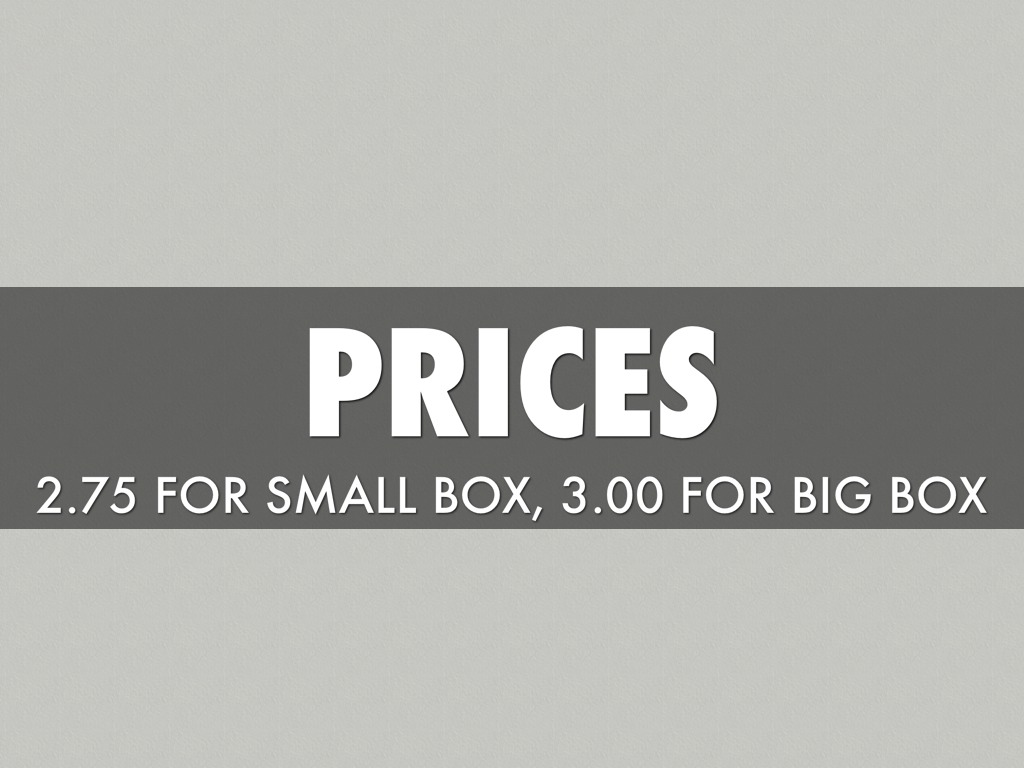2.75 FOR SMALL BOX, 3.00 FOR BIG BOX