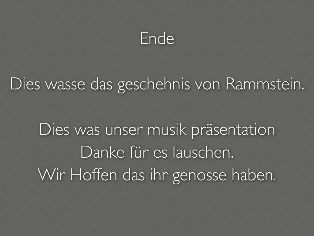 Rammstein ist eine Deutsche Rock-Band die in 1994 in Berlin gegründet wurde. Am anfang , viele texte waren auf English als White Flesh, später bekannt als Weisses Fleisch die in Deutscher Sprache aufgenommen wurde. Die band brach durch international als David Lynch leider von Rammstein und Heirate Elson nutzte Seine bizarre Film Lost Highway aus 1997.