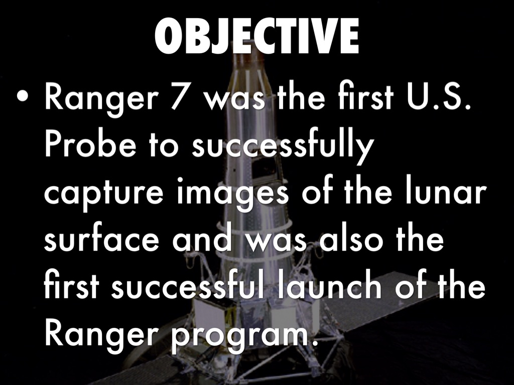 • Ranger 7 was the first U.S. Probe to successfully capture images of the lunar surface and was also the first successful launch of the Ranger program.