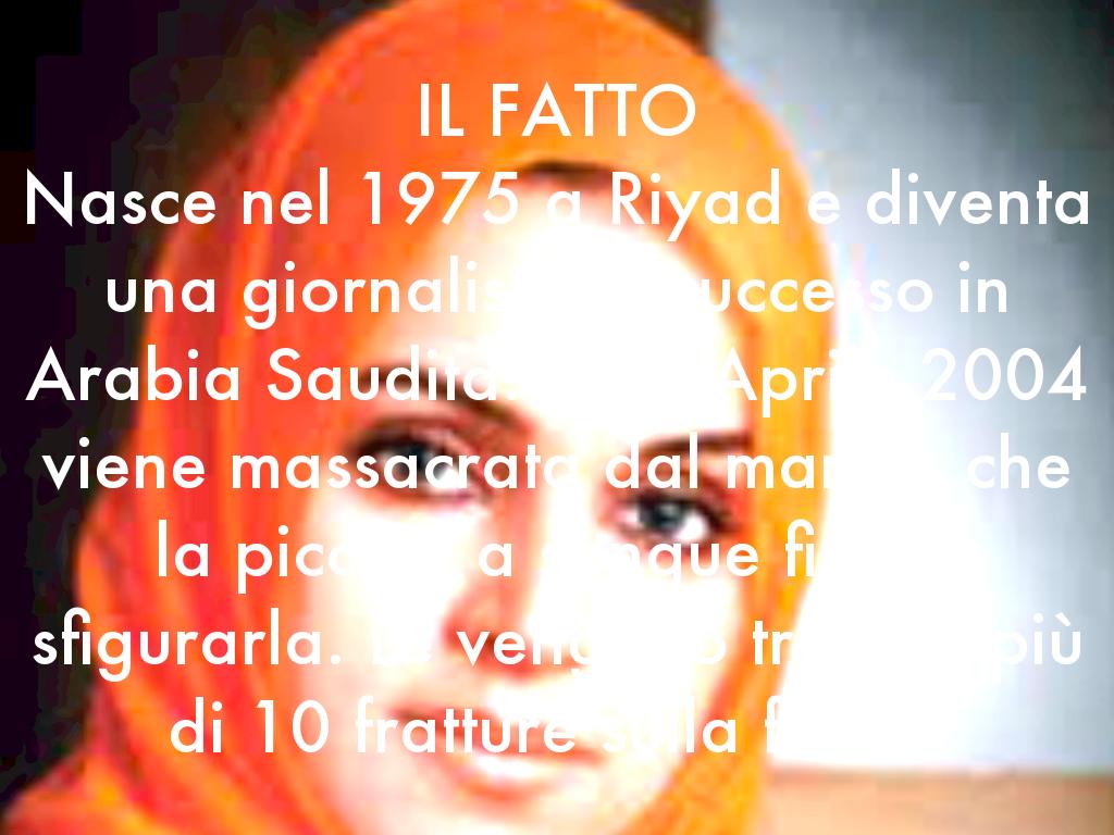Nasce nel 1975 a Riyad e diventa una giornalista di successo in Arabia Saudita. Il 13 Aprile 2004 viene massacrata dal marito, che la picchia a sangue fino a sfigurarla. Le vengono trovate più di 10 fratture sulla faccia