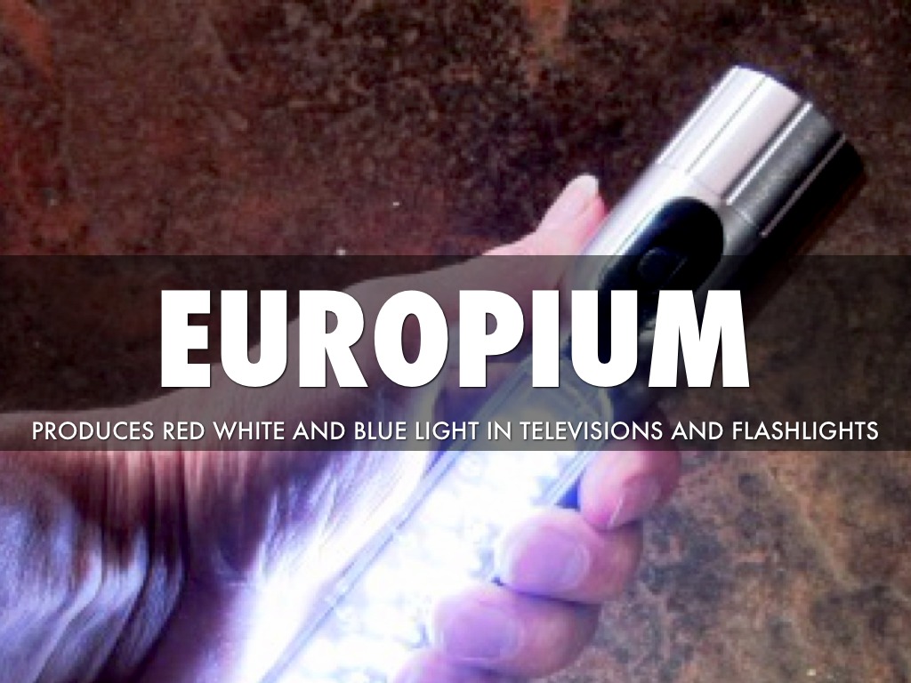 PRODUCES RED WHITE AND BLUE LIGHT IN TELEVISIONS AND FLASHLIGHTS