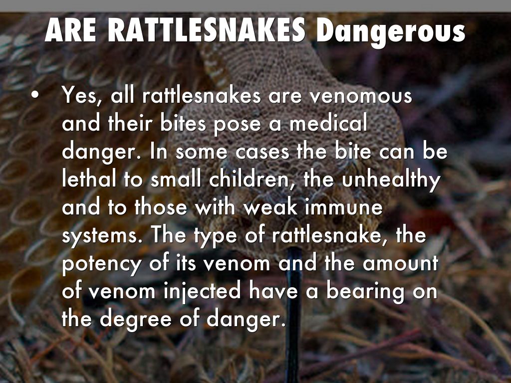 Yes, all rattlesnakes are venomous and their bites pose a medical danger. In some cases the bite can be lethal to small children, the unhealthy and to those with weak immune systems. The type of rattlesnake, the potency of its venom and the amount of venom injected have a bearing on the degree of danger.