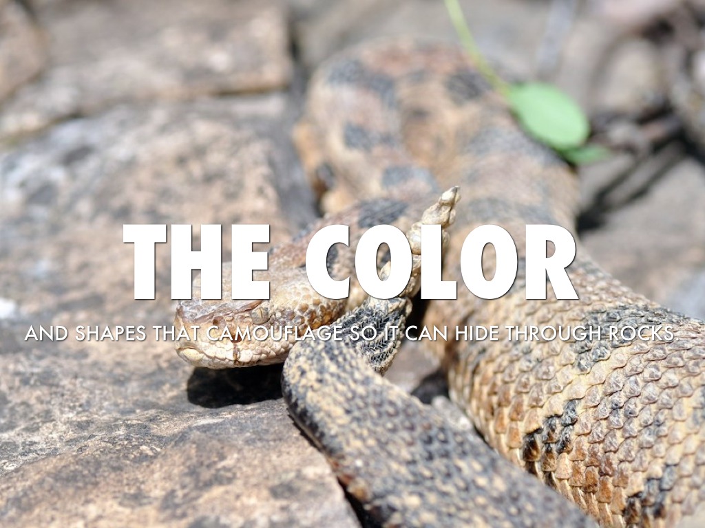 AND SHAPES THAT CAMOUFLAGE SO IT CAN HIDE THROUGH ROCKS.