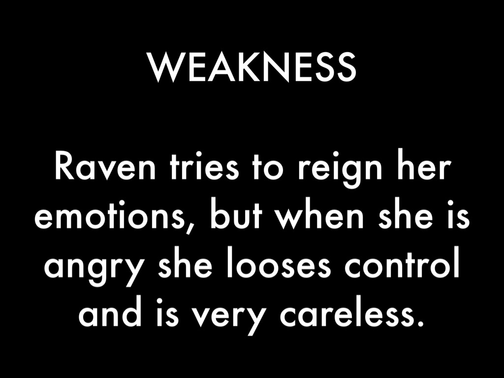 Raven tries to reign her emotions, but when she is angry she looses control and is very careless.