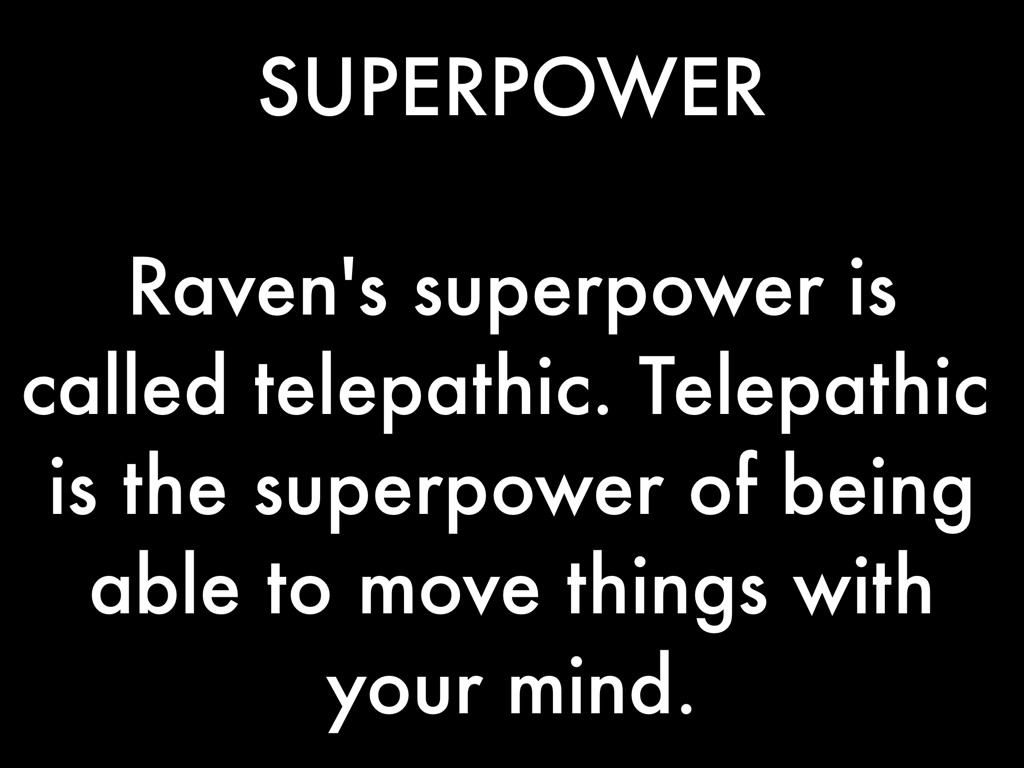 Raven's superpower is called telepathic. Telepathic is the superpower of being able to move things with your mind.