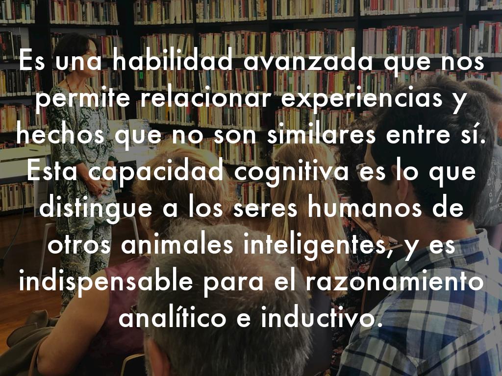 Es una habilidad avanzada que nos permite relacionar experiencias y hechos que no son similares entre sí. Esta capacidad cognitiva es lo que distingue a los seres humanos de otros animales inteligentes, y es indispensable para el razonamiento analítico e inductivo.