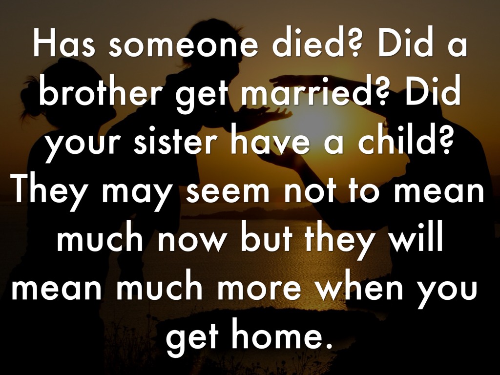 Has someone died? Did a brother get married? Did your sister have a child? They may seem not to mean much now but they will mean much more when you get home.