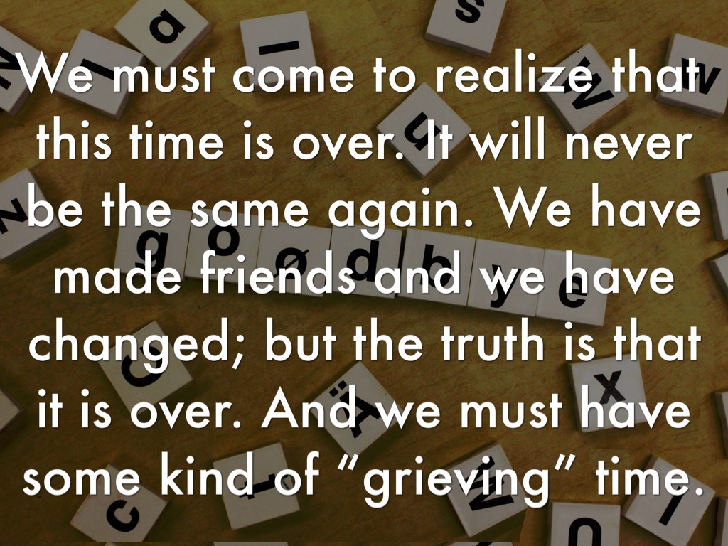 We must come to realize that this time is over. It will never be the same again. We have made friends and we have changed; but the truth is that it is over. And we must have some kind of “grieving” time.