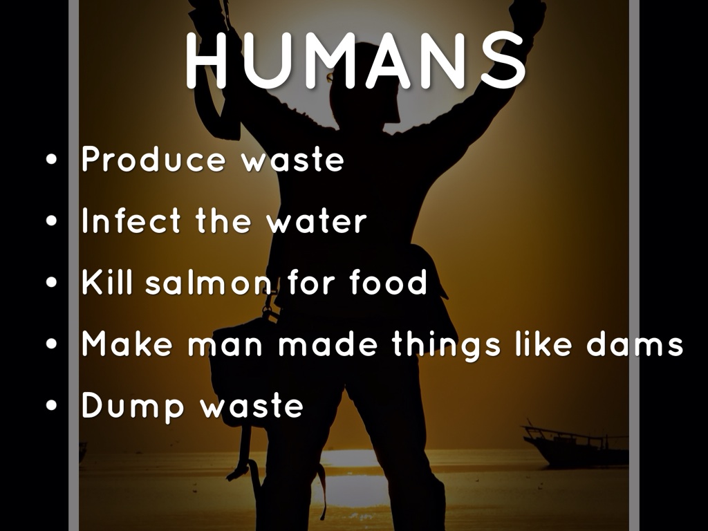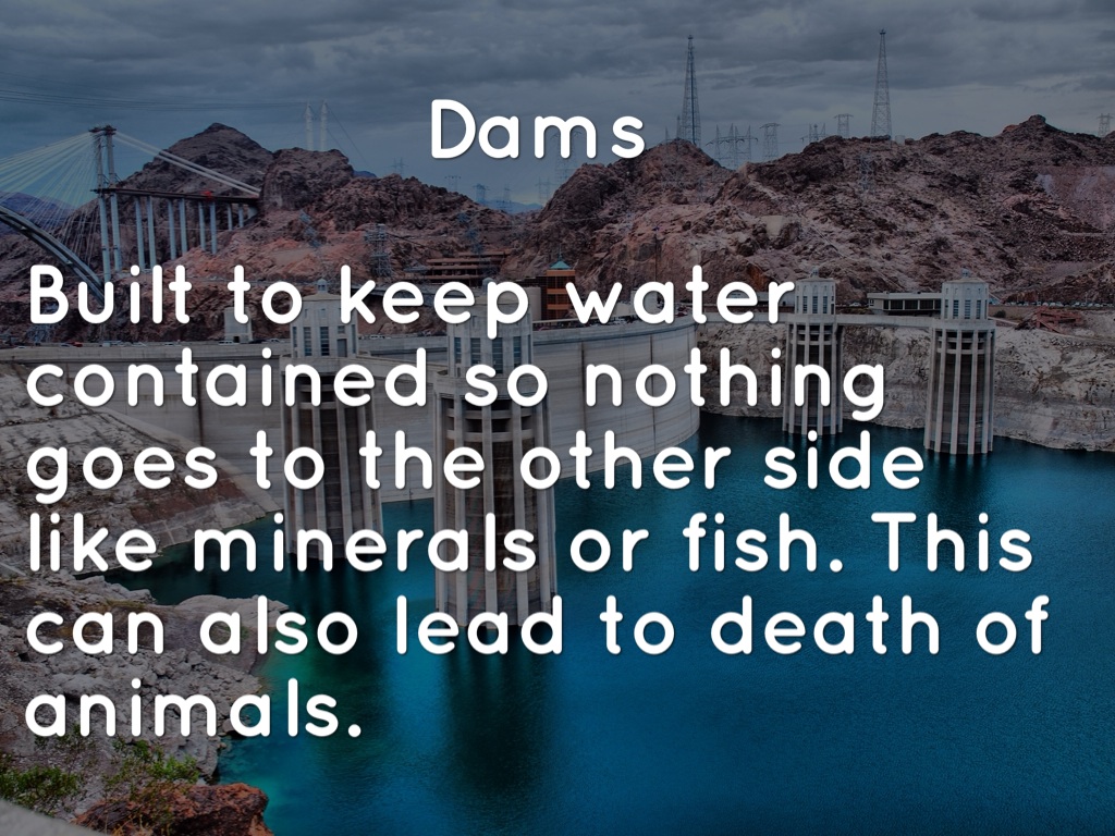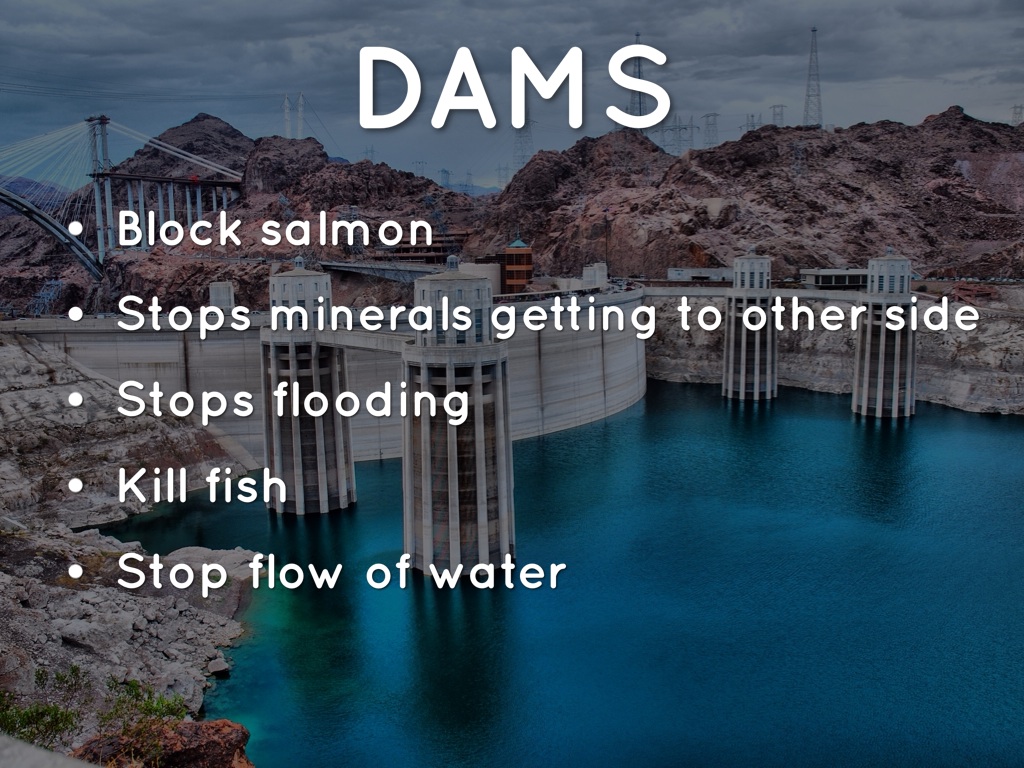 "Dams block the passage of salmon and steelhead between spawning and rearing habitat and the Pacific Ocean."