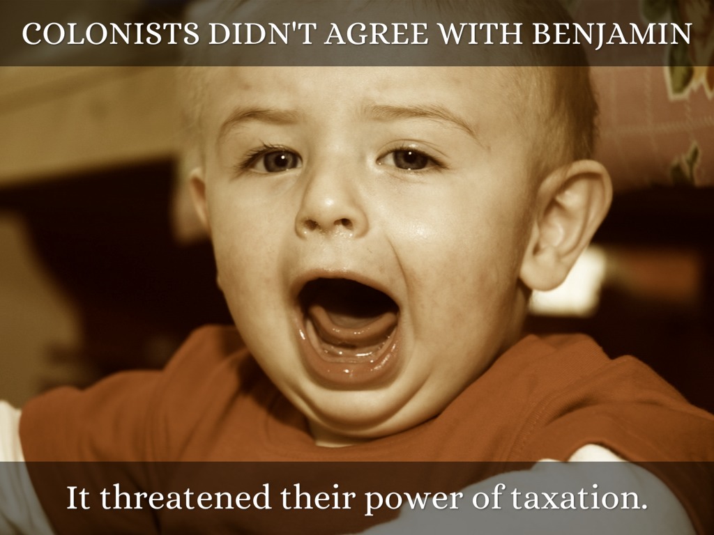 COLONISTS DIDN'T AGREE WITH BENJAMIN