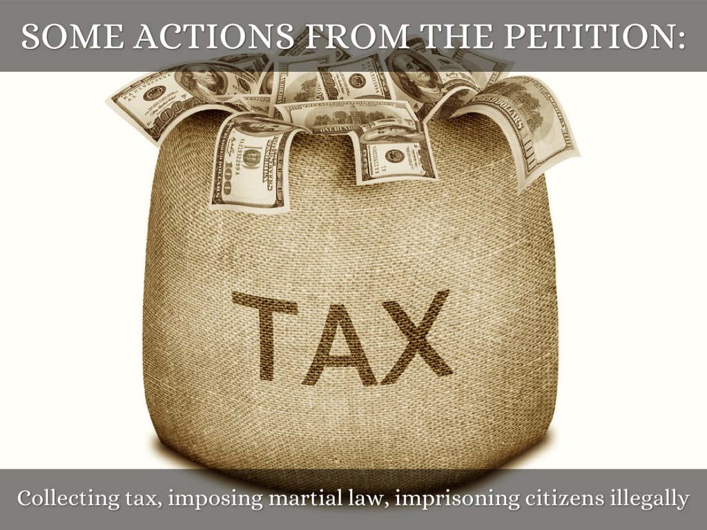 Collecting tax, imposing martial law, imprisoning citizens illegally