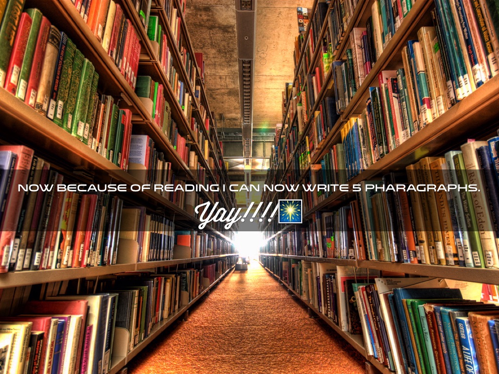 NOW BECAUSE OF READING I CAN NOW WRITE 5 PHARAGRAPHS.