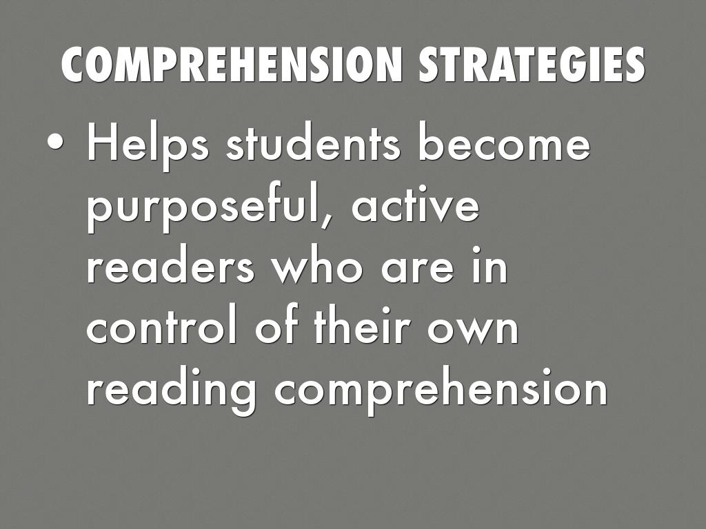 Helps students become purposeful, active readers who are in control of their own reading comprehension