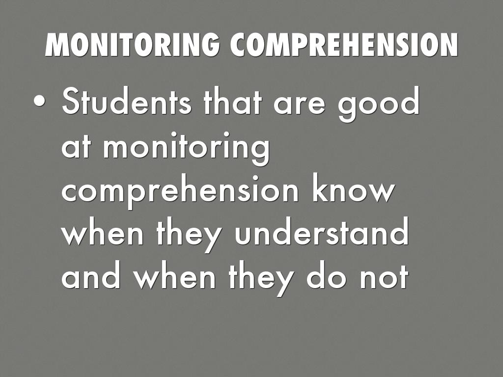 Students that are good at monitoring comprehension know when they understand and when they do not
