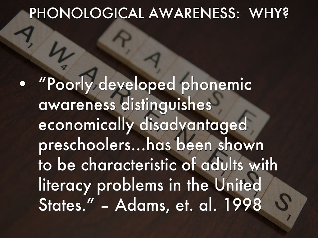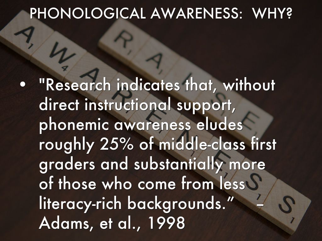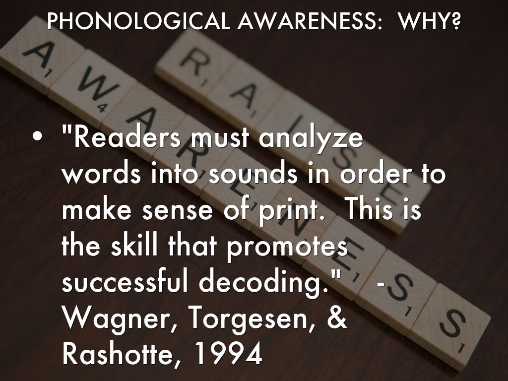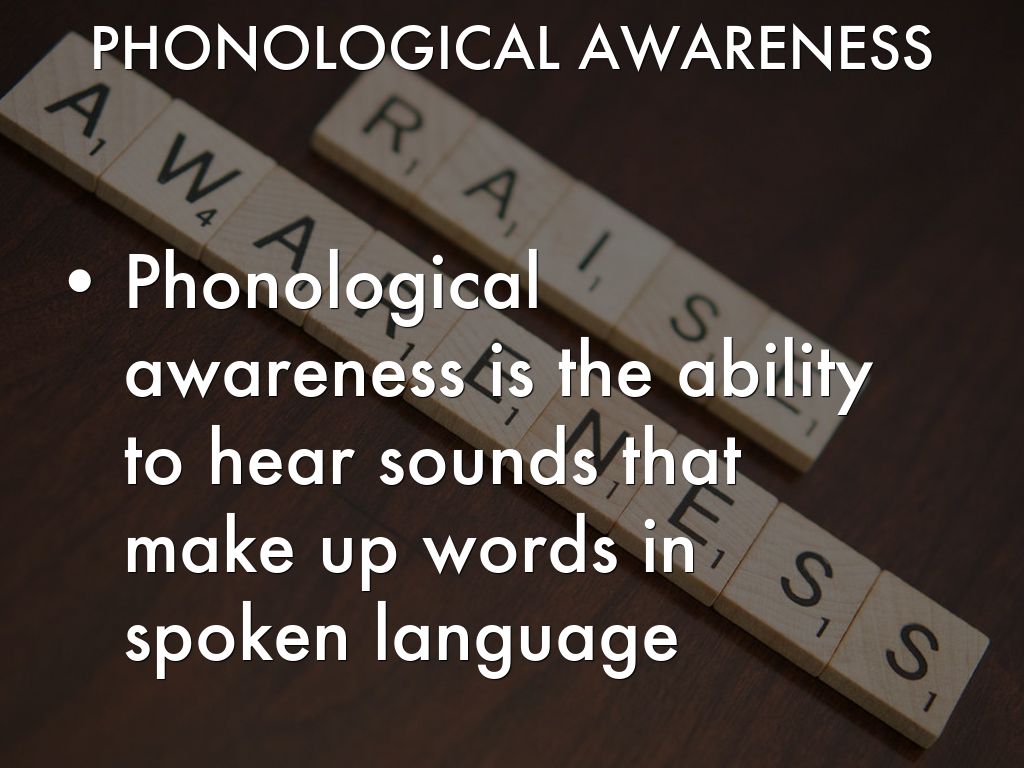 - Phonological awareness is the ability to hear sounds that make up words in spoken language