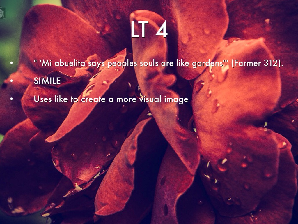 " 'Mi abuelita says peoples souls are like gardens'" (Farmer 312).