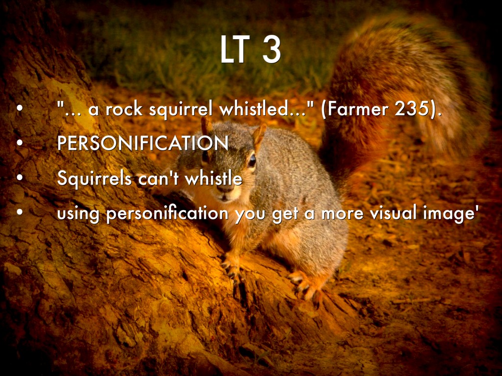 "... a rock squirrel whistled..." (Farmer 235).